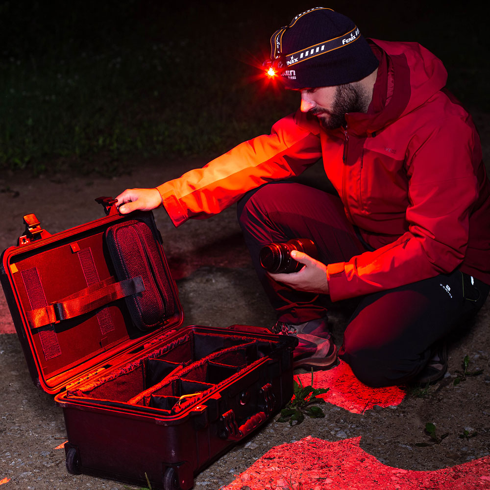 Kohdevalo hyödyntää Fenixin DualDistance-kaksoislinssioptiikkaa, joka valaisee tehokkaasti sekä lähialueen että kaukaiset kohteet yhdellä valokeilalla. Lähivalo tarjoaa laajan ja luonnollisen valaisun kartanlukuun, leiritoimiin ja huoltotöihin. Kaksi punaista valoa säilyttää hämäränäön ja toimii myös huomaamattomana yö- tai turvavalona – täydellinen ominaisuus metsästykseen ja yöretkille.