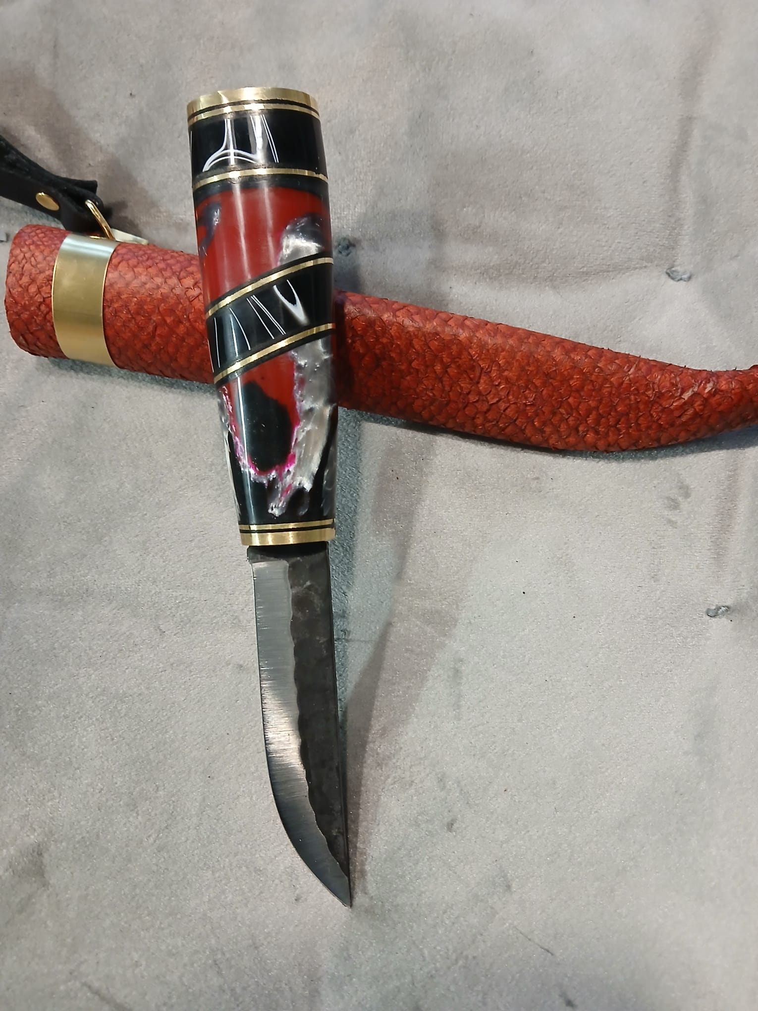 Komea yksilöllinen Akryylipuukko!Lohennahalla päällystetty nautaparkki tuppi!